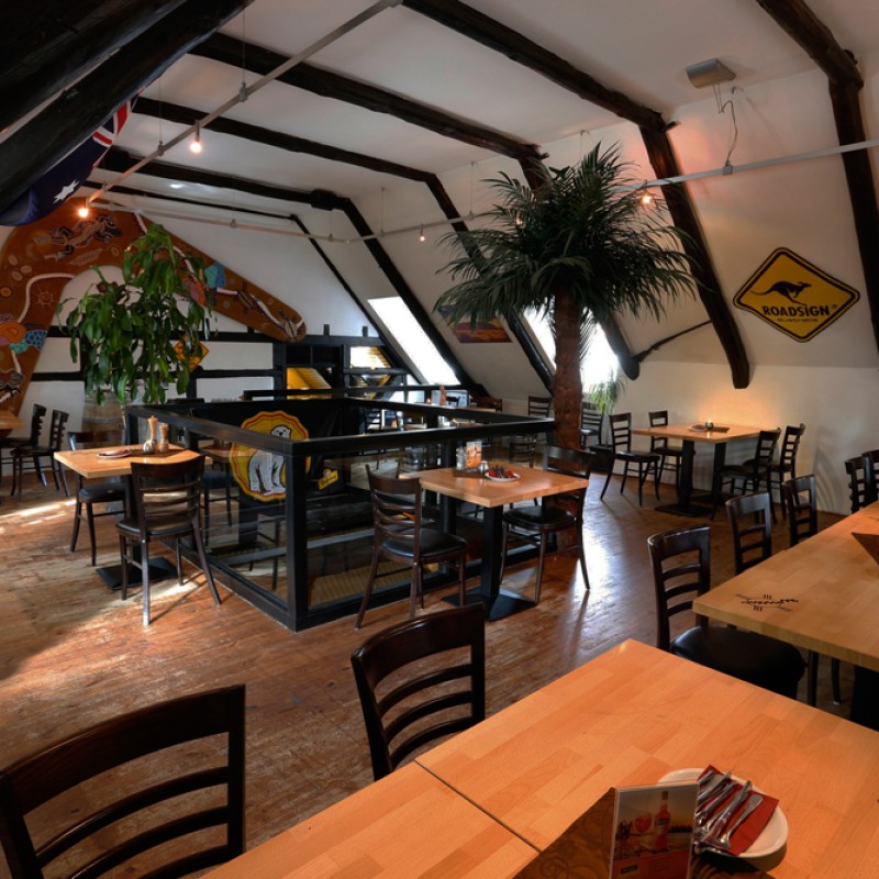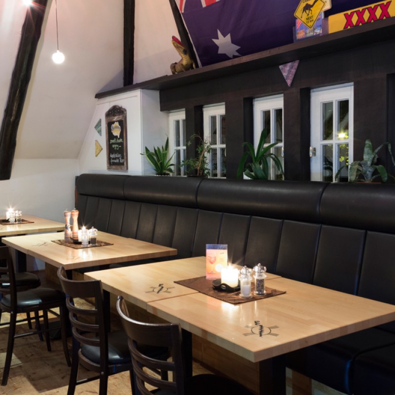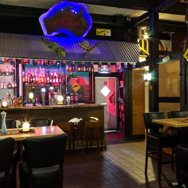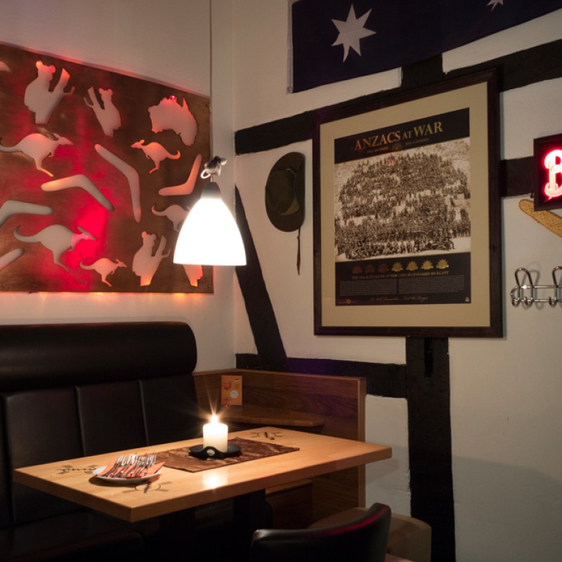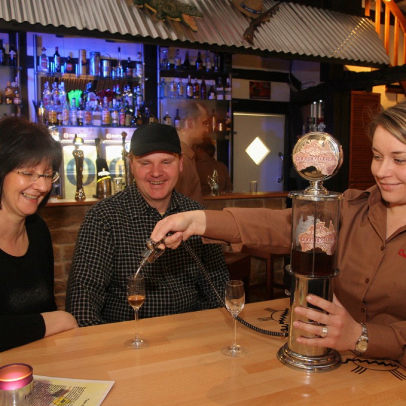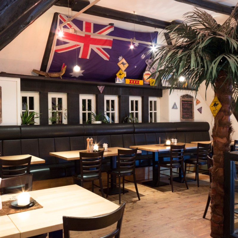 Unsere Karte bietet neben den Spezialitäten aus Australien auch verschiedene andere internationale Gerichte, so dass wir für jeden Geschmack etwas anbieten können. Wir servieren Steaks und Burger, Salate und Fingerfood sowie auch exotische Speisen, wie Känguru-, Krokodil-, und Straußenfleisch sowie für Fischliebhaber Barramundifilet. Zum Essen reichen wir australische Biere und Weine. Bei uns kann man relaxen, genießen, schlemmen und von Australien träumen - lassen Sie sich doch einfach mal verführen. Unsere Servicemitarbeiter und unsere Köche möchten Ihnen gerne einen Eindruck von australischer Gastfreundschaft geben.